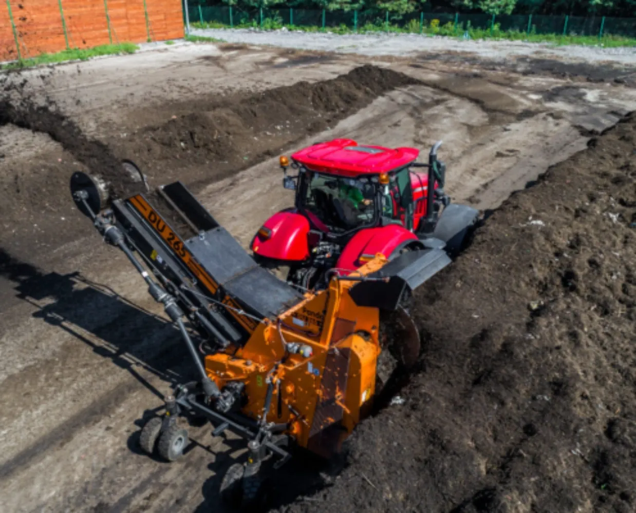 The DU 265 windrow turner is used for the effective turning and processing of compost windrows, contaminated soils and for windrows comprising shredded green waste or residual waste /bio-waste.