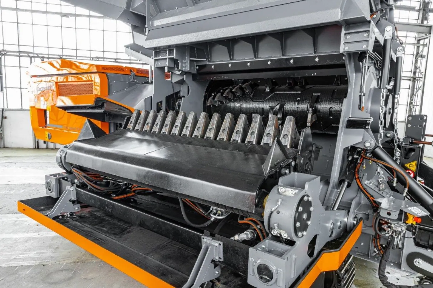For instance, with its unique VarioDirect Drive concept. It leverages Doppstadt’s patented gearbox. This combination of mechanical and hydraulic gears continuously and steplessly transfers the torque to the shredding system. By doing so, the speed of the shredding shaft can be flexibly adapted to the different material throughput, while the drive is very efficient at delivering a high level of performance at a constant speed. As a result, it is also possible to stop and start the shredding process even under load. And in case of blockage, the VarioDirect Drive can automatically switch to reverse mode.