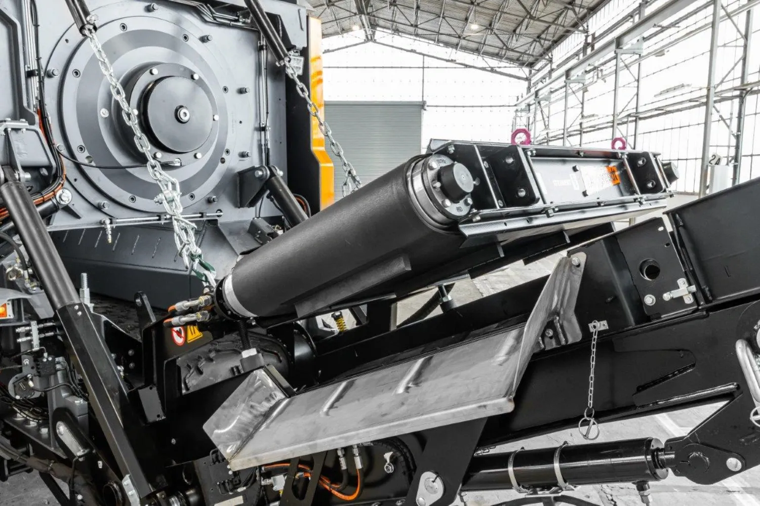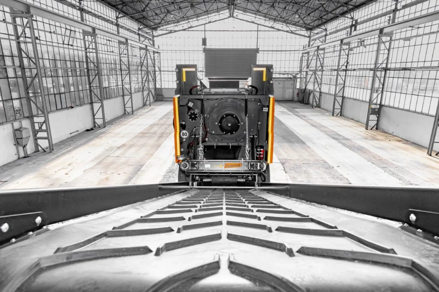 The machine is distinguished by great flexibility. Different discharge conveyor belt systems can be easily mounted and replaced using the central attachment system. As a result, selectable belt lengths of 4,9 m or 7 m allow for implementing very high discharge heights and steplessly adjustable belt angles.